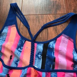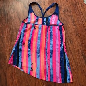 really cute Candies striped tank. gorgeous pink orange and blue, braided racer back, and polyester