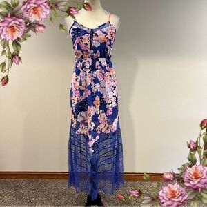 Candie's Blue and Pink Floral Maxi Dress with lace details
