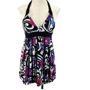 Candies Floral scroll Print Halter Bubble Bottom medium VNECK Dress