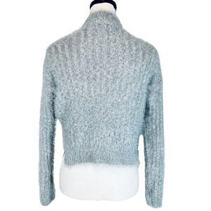 Candie’s Fuzzy Mock Neck Pullover Sweater. Long sleeve. Side hems have a partial slit on either side. Striped detail. Good, gently worn condition.