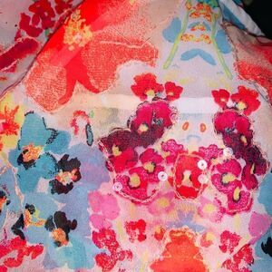 Beautiful semi sheer tank top. The top has some embroidery and sequins around the flowers. In good condition