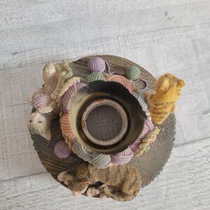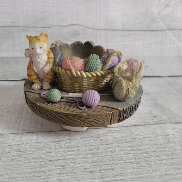 This finely crafted candle topper features an intricate design with cats and yarn motifs. Ideal for adding a touch of charm to any home decor.