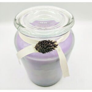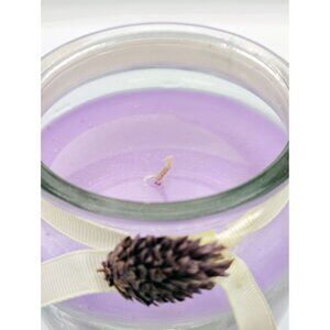 Candle Glass Jar Lavender Scented Lid Ribbon Pinecone Accent 18oz Purple