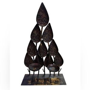 Candle Holder Mid Century Metal Rustic Leaves Sculpture Vintage 18.5"
