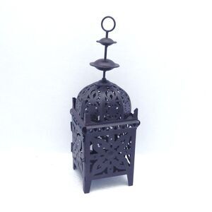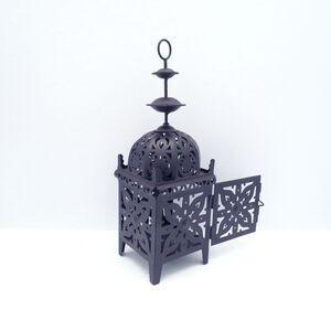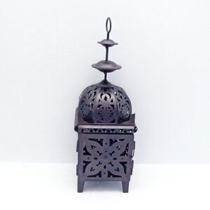 The detailed metal work and Moroccan inspired designs in this vintage candle holder create a gorgeous effect of flickering light that can either set the tone for outdoor events or cast an exquuisit glow on your table top. A hinged door makes it easy to place the candle or LED light inside. It is ideal for festive parties, weddings, outdoor lighting or as a gift.
