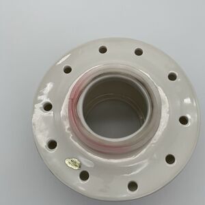 This is a ceramic candle jar shade/topper. It is white and has red amaryllis, green holly with red berries and daffodils designed around it. The topper is a little over 3.5 inches high and has a 5.5 inch bottom diameter. The top opening is 3 inch in diameter, bottom opening is 2 inches in diameter, and the plastic ring around the bottom opening is 3 inches in diameter. This is what inserts into the candle jar. Please note some red discoloration and black smoke residue on the bottom plastic ring from sitting on a red candle when lit. The ceramic shade/topper is clean and has no chips or cracks. Please see pictures for details and feel free to ask questions. Lovely decor for the winter holidays.