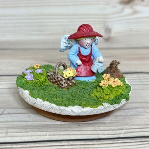 Candle Jar Topper/Lid Angel Watering Flower Garden Basket Summer Groundhog Green.