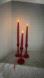 18”, 16” and 13” tall would made a lovely centerpiece placed on a charger with other Holiday decorations Candle Sticks have a shiny red glitter look but it doesn’t flake off. flickering light looks so real. battery operated 18”, 16” and 13” VTG