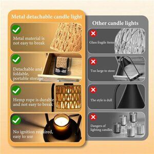 🧿Foldable Wax Melting Lamp: The lampshade is removable and the lamp body folds for easy storage. The lampshade is made of high-quality hemp rope and a black metal bracket. Double-stem candle lamps are more durable and beautiful, with higher material costs and better heat dissipation. They are safer than glass and ideal for homes with children and pets. Our candle warmer also extends the life of jar candles, making it both environmentally friendly and economical. It uses a light source to evenly melt the candle, eliminating the need for open flames or smoke.