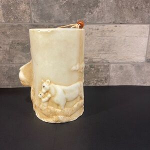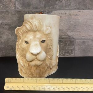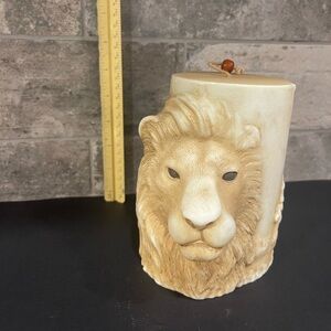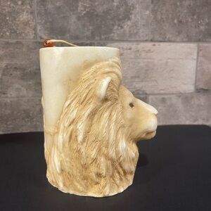 Candle with Lion face and lioness and cub. 4” wide 5” tall. Does have a few nicks on top.