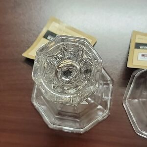 Sturdy glass candleholders have lovely angular-cut edges that will add a touch of sophistication to any table setting! Also a perfect addition to floral centerpiece arrangements. Each candleholder has a raised edge rim at the top opening.