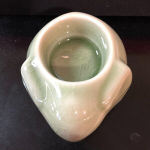 -- Ceramic incense cone and stick holder with green crushed glass insert