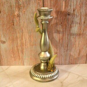 Candleholder Silver Color With Antler Outdoor Theme Decor Or Camp Accent