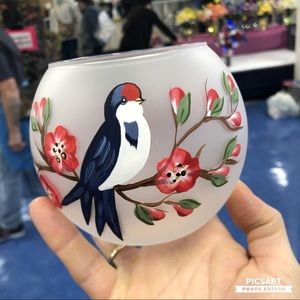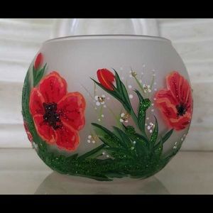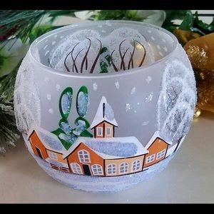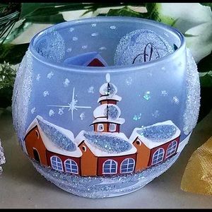 Our candle holders are made from scratch. We take the time to make the glass from scratch which ensures it's clarity, beauty and durability. They are hand painted using high quality acrylic watercolors. A solid base coat is applied first and then the decorations are added with the greatest of care. We pride ourselves on the details so pay close attention to things like windows 😀