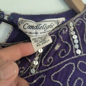 Candlelight By Jainsons International 100% Silk Purple Sequin Embellished Top Lg