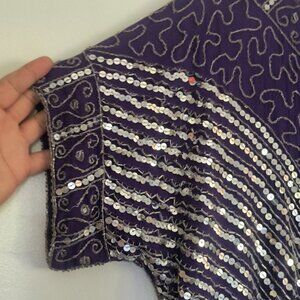 Stunning purple top with intricate sequin embellishments. Perfect for a night out.