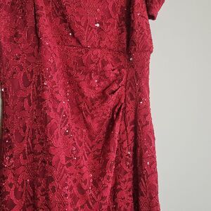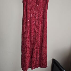 Beautiful Red Lace Overlay Sequin Size Large Formal Long Dress wedding cocktails formal Dance Prom