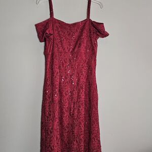 Candlelite NWT Lace Sequin Off The Shoulder Red Formal Cocktail Maxi Dress Large