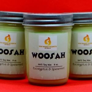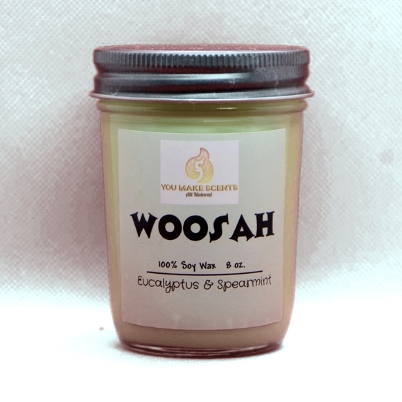 100% Soy wax candle in an 8 oz. Glass jelly jar. Scented with Bergamot, Citrus, Eucalyptus & Spearmint, Amber, Cedarwood, and Musk. Over 40 hours of burn time. No harsh chemicals. This candle is suitable for a small space.