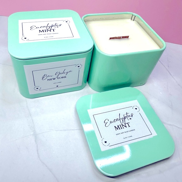 Eucalyptus Mint Soy Wax Candle 8oz Wooden wick Tin vessel