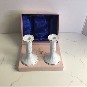 Casa Bella Fruits Of Life 4.5” Candlestick White With 24K Gold Trim And Flower Design In The Middle, New , Box Has Some Demage