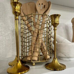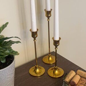 EXQUISITE DESIGN: They are golden brass color with a brushed metal design, vintage & extremely exquisite feel. They are slender, classic, heavy and with a good weight. This candle holder set combines aesthetics and practicality together,