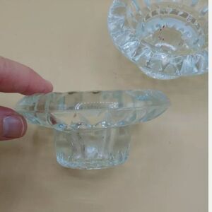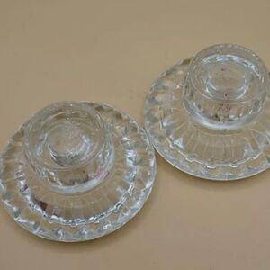 Candlestick Clear Glass Short 1.5" Candle stick Holders Vintage Pair no Candles