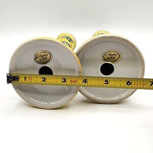 Candlesticks Andrea By Sadek French Country Yellow /Blue Violets Floral Ceramic
