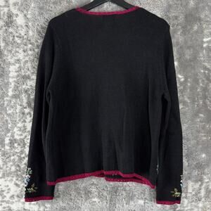 Cando Size S Floral Embroidery V Neck Button Cardigan Sweater Black Long Sleeve
