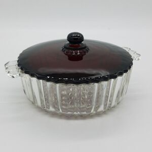 Candy Bowl Dish ruby red clear bottom with red top vintage