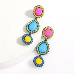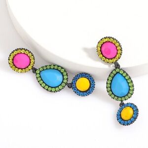 Candy Bright Bold Drop Statement Earrings Pink Blue Yellow Pierced