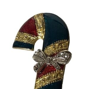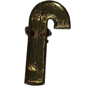 Candy Cane Brooch Christmas Vintage Red Enamel Rhinestone Striped Gold tone