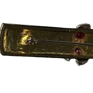 Vintage Christmas Candy Cane striped red enamel rhinestone gold tone brooch. Xmas candy cane twist crystal bow enamel holiday
