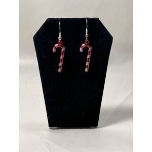 Candy Cane Christmas Inspired Silver in Color Fish Hook Stud Earrings