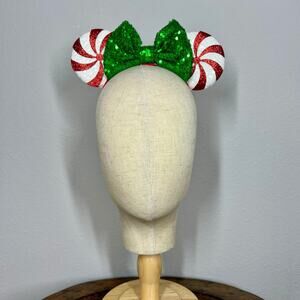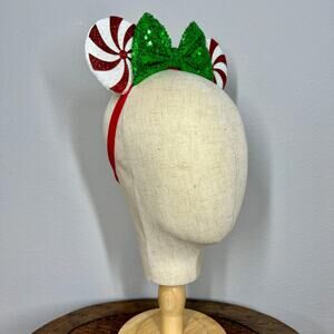 These Disney-inspired headbands feature iconic Mickey Mouse ears adorned with a red and white glittery peppermint twist, the ultimate accessory for adding a sprinkle of Christmas cheer to any occasion. 🍭✨