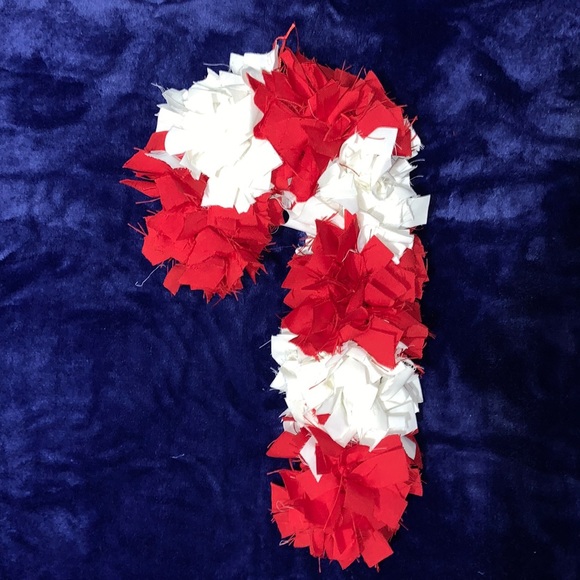 Candy Cane Rag Wreath. Handmade 16” long and 9” wide