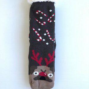 Candy Cane Reindeer Pug Sherpa Lined Slipper Socks
