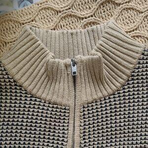 *Candy & Caviar khaki & charcoal recycled blend mockneck quarter-zip sweater.