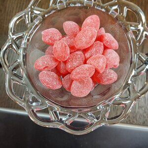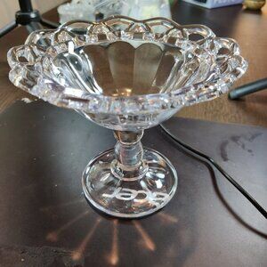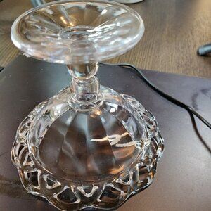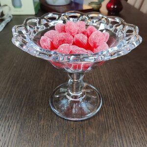 Candy Dish, reticulated in crystal on a stand, very cheerful & bright.