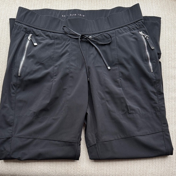 Stylish black pants featuring a drawstring waist and zipper pockets. 53% polyamide, 32% elastane. Ultra light, highly elastic and fast drying. Perfect for casual wear. Excellent condition.