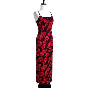 * Candy Rocket Y2K Floral Mesh Babydoll Maxi Dress M Red Milkmaid Whimsigoth Sheer