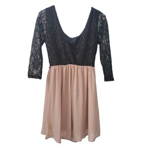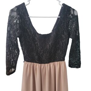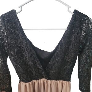 Black Shimmer Lace, Nude Skirt