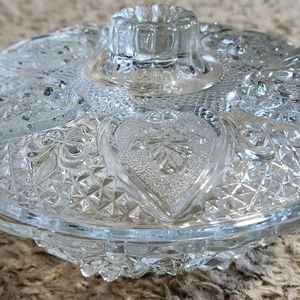 Vintage KIG Malaysia Clear Glass Hearts & Roses Pattern 5” Candy Dish Bowl w/Lid. Great condition! No scraches, scuffs, or chips.