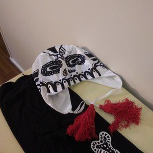 Candy skull and bones tights/leggings and cap with tassels - tights are size small. Fit to about mid shin level. No holes or snags. smoke-free home.