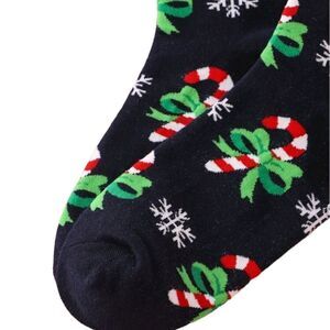 New! Candy cane pattern novelty socks. Black crew socks with red trim and candycane and snowflake pattern. Would make a great gift! Bundle to get a discount. *Reasonable* offers welcome.
