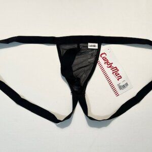 CandyMan Size L/XL Sheer Mesh Thong - Black - Pouch