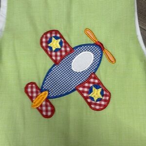 These charming green kids overalls feature a playful airplane design, perfect for little adventurers. Comfortable and stylish for everyday wear.