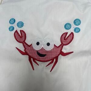 Great condition boys size 18 months white jon jon one piece, has snaps at the crotch with embroidered applique crab and bubbles on the chest