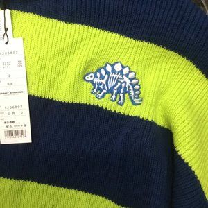 Candystripper of Japan dinosaur embroidered stretch cotton knit sweater OS brand new fits to 2x twofer style sweater oversized fit