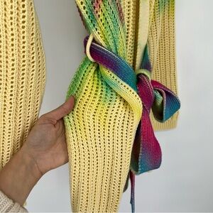 Canessa 100% Cotton Rainbow Knit Tie Dye Belted Designer Luxury Cardigan Sweater Small